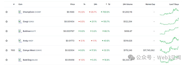 最近这段时间,加密货币市场又躁动起来了。比特币带头冲锋,整个市场就跟打了鸡血似的。要说最热闹的,还得是那些"网红"币种 - 狗狗币、佩佩、弗洛基、柴犬这些"表情包"代币,简直成了投机客们的新宠。看看数据就知道,主流山寨币的日均交易量直接翻倍,这架势,让人不禁想起当年牛市的味道。狗狗币近期表现抢眼我这几天一直在关注狗狗币,发现它的表现确实亮眼。短短一周就涨了21%多,现在价格在0.071美元左右徘徊...